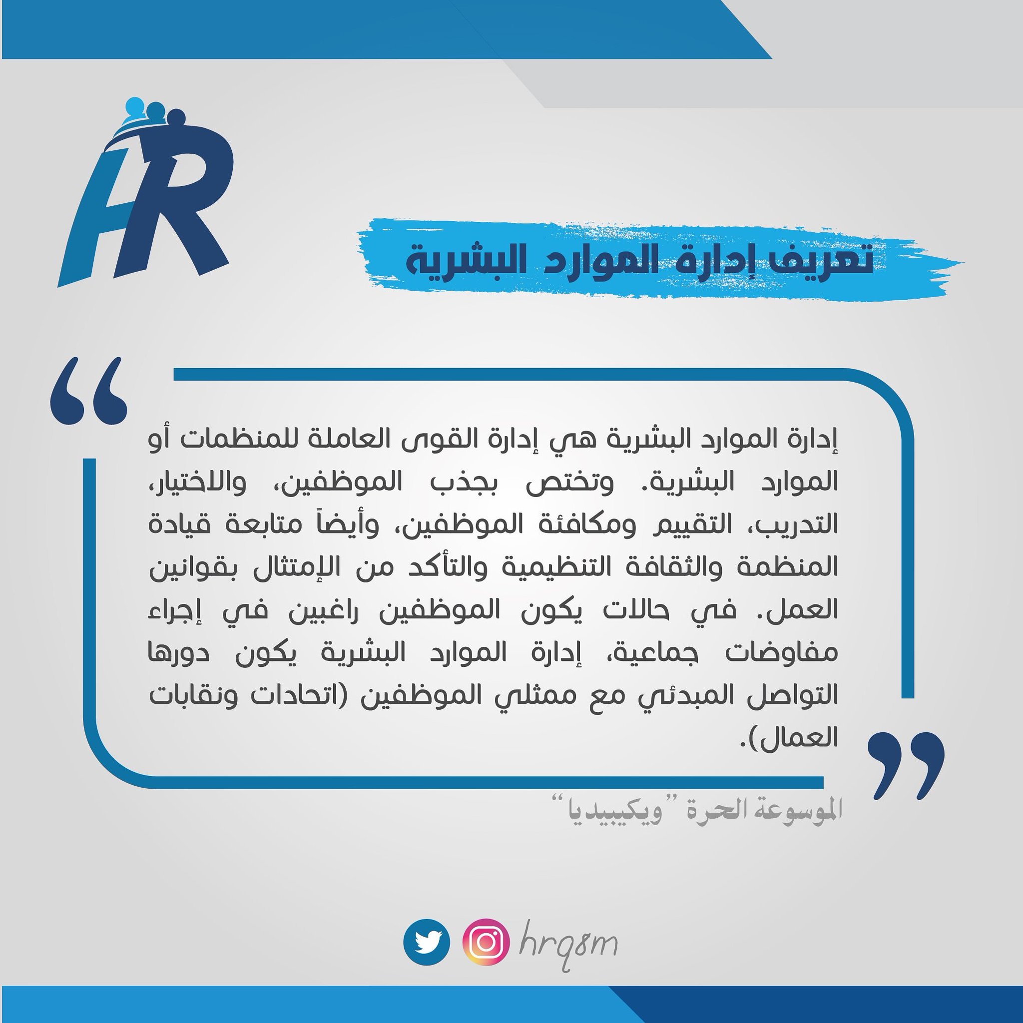Human resources management هي نوع خاص من أنواع الإدارة التي ت عنى بالعنصر البشري بشكل أساسي وتركز على كيفية استقطابه والطريقة التي يتم اختياره بها لينضم لفريق العمل في منشأة ما وتنظيم أموره وتقييم أدائه. بحث كامل عن ادارة الموارد البشرية مـــــقـــــدمـــــة. كلمة م و ارد هي جمع م و ر د ة وم ور د وتعني في اللغة العربي ة. الموارد البشرية هي القوة العمالية المنتجة التي تمتلكها أية مؤسسة في داخلها وتوظفها بهدف التمكن من أداء أعمال ووظائف محددة داخلها وتتميز الموارد البشرية بكونها.