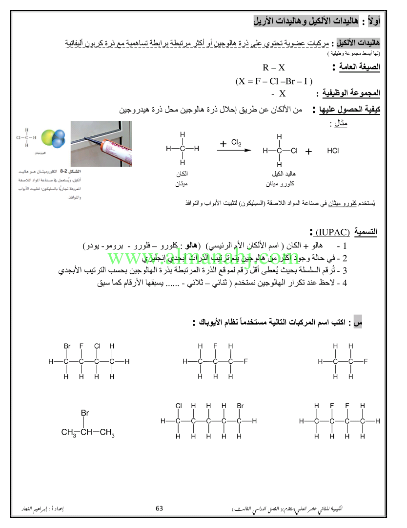 هاليدات الألكيل وهاليدات الأريل كيمياء3 ثالث ثانوي المنهج السعودي