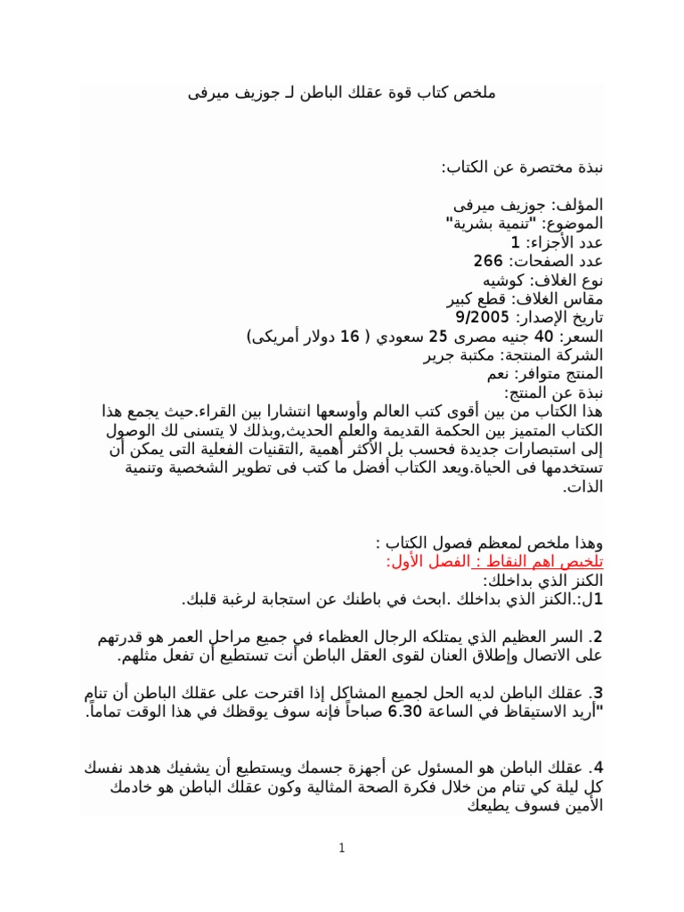 تلخيص كتاب قوة عقلك الباطن د جوزيف ميرفي Najat Albar