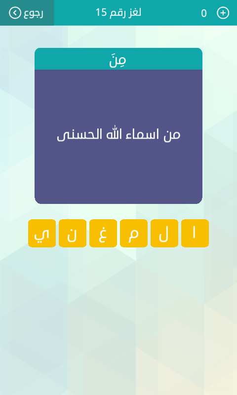 حلول لعبة وصلة للكلمات المتقاطعة من اسماء الله الحسنى المجموعة الثانية لغز رقم 16