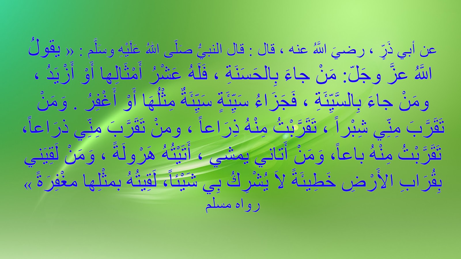 شرح الحديث القدسى الشريف من جاء بالحسنة فله عشر أمثالها أو أزيد من رياض الصالحين فذكر