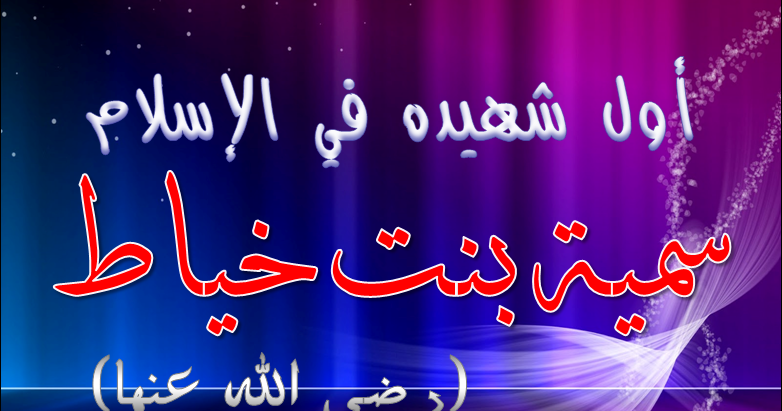 نعمة الإسلام و لذة القرب من الله سبحانه و تعالى نعمة لا يدركها حقا إلا من ذاقها و لذلك المسلمون و المسلمات على أتم الإستعداد لبذل أرواحهم لإعلاء كلمة الله عزوجل و من أشهر الصحابيات. ذكرت كتب التاريخ أن الحارث بن أبي هالة هو أول رجل يستشهد في سبيل الله وهو أخو هند بن أبي هالة ربيب النبي عليه الصلاة والسلام وكان استشهاده حينما أمر الله تعالى نبيه الكريم. خي اط أم الصحابي الجليل عم ار بن ياسر رضي الله عنه من السابقين. قال رسول الله صل ى الله عليه.