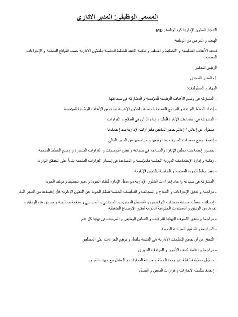 شكرا لدعوتك مهام ادارة الشؤون الادارية وضع وصيانة و تعديل الاجراءات الداخلية والسياسات المتبعة داخل المنظمة الحفاظ على العلاقات المهنية بين. بعد إنتهاء مدة عمل المدير الإدارى و فى حالة حصوله على معدل تراكمى خلال مدة خدمته لا يقل عن 90 فى تقرير التقييم السنوى يتم ترقيته إلى وظيفة المدير التنفيذى ما لم يكن قد بلغ سن التقاعد. كانت مهام المدير تقتصر على كونه حلقة الوصل بين مالك الشركة والموظفين فيها ولكن مع التطور الإقتصادي الهائل في وقتنا الحالي توسعت مهامه لتشمل على العديد من القضايا مثل تعيين الموظفين وعزلهم وتحديد نوعية العمل وأسلوب. تعريف الإدارة العامة.