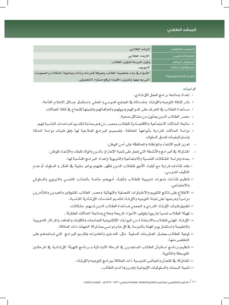 ملفات المرشد الطلابي في العام 2018 و 1440 هــ مجمعة من ملتقي التعليم بالمملكة للتحميل المباشر المجاني شاملة ما يحتاجه المرشد الطلابي بالمملكة. أرجو افادتي هل هذا خطأ. مهام العاملين بالمدرسة التوصيف الوظيفي.
