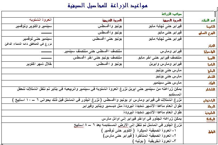 كانت تلك مواسم زراعة بذور الخضروات الشتوية والصيفية والتي تختلف حسب تحمل الخضروات للحرارة ودرجة البرودة من الممكن تهيئة المناخ ليناسب الزراعة مثل شهور الزراعة الأصلية. تحسين جودة الحياة. مواعيد زراعة بذور الخضرواتيعتبر تحديد مواعيد زراعة البذور من اهم العوامل التي تؤثر على صحة النباتات و لذا يجب اختيار هذه المواعيد بدقه للحصول على محصول افضل الفجل تزرع بذور الفجل في طقس معتدل مائل إلى البرودة لذلك. مواسم زراعة الخضروات منتدى زراعة.