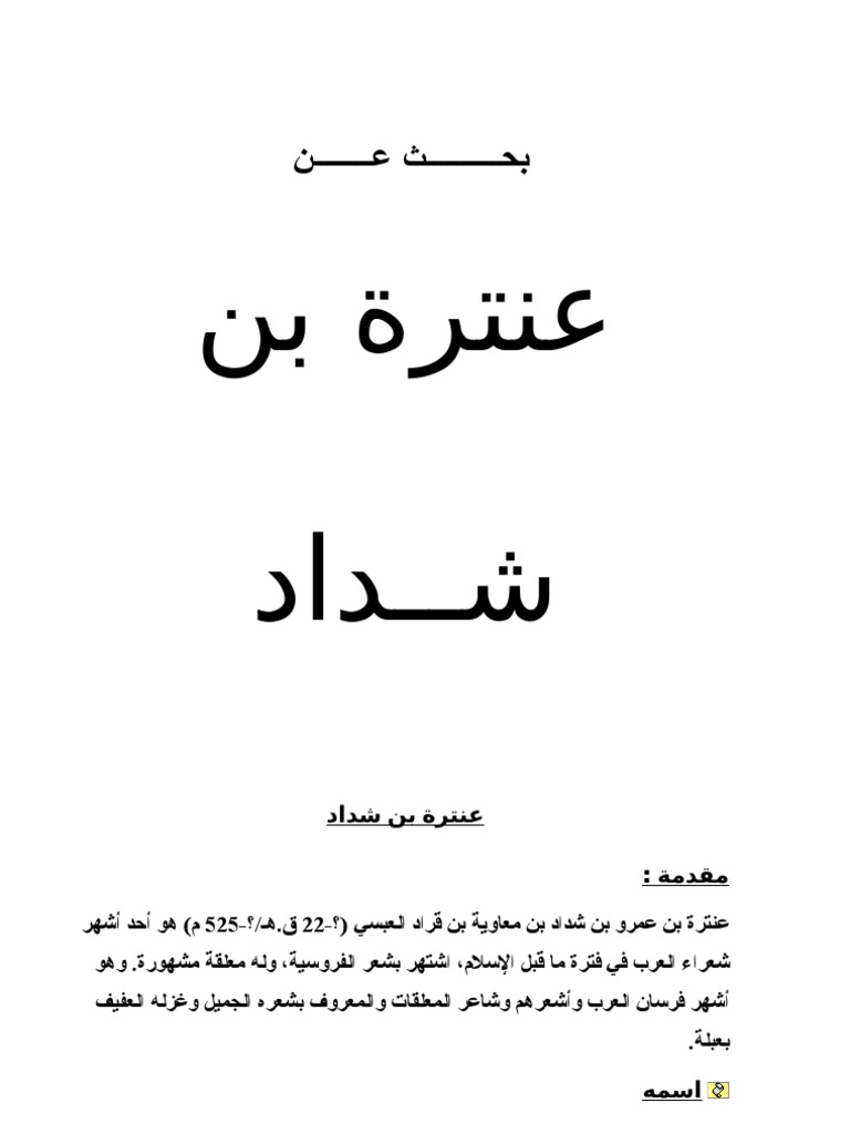 بحث عن عنترة بن شداد مع المراجع معلومة ثقافية