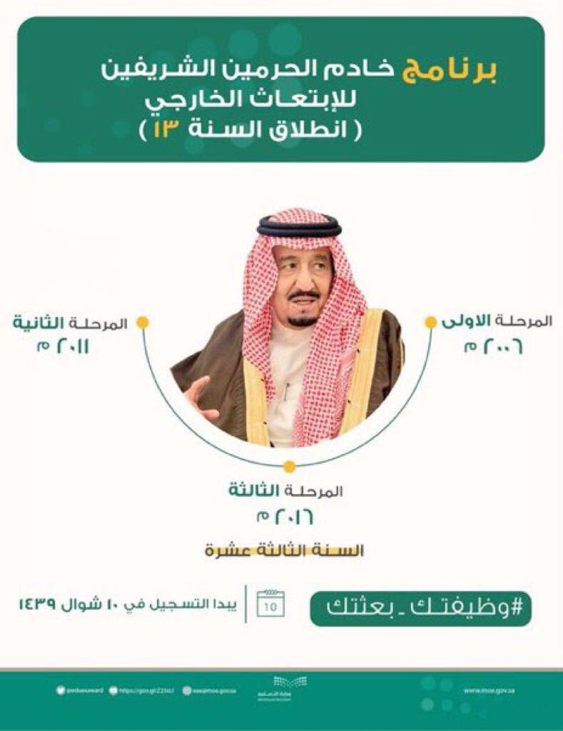 تقوم المملكة بشكل مستمر في اعطاء الراغبين والباحثين عن المنح والبعثات كل الحق في الابتعاث للخارج وذلك من اجل تنمية التعليم والعلم بشكل اكبر من خلال الدراسة في اكبر جامعات العالم وفي شتى بلدان العالم وفي كل عام تقوم المملكة بتوفير.